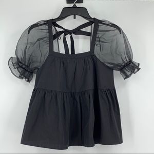Topshop Organza Short Sleeve Peplum Blouse Top Black Square Neck Sz 2P US New 8989. New with paper tags. Pit to pit 16", length 22.5".