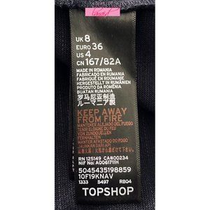 Topshop "Belted Wrap Mini Dress" in Navy, size 4. Sold out everywhere! Some overall fuzzing to the fabric/slight pilling (see close-up photo for example--difficult to capture due to the texture of the fabric, which is meant to look a bit like distressed linen); price reflects. Topshop description: "Soft and stretchable polyester fabric. Surplice v-neck and short sleeves. Wrap construct with belt to waist. Asymmetric hem style. 96% Polyester 4% Elastane."
