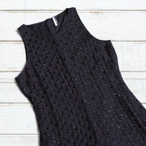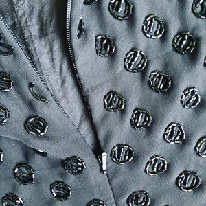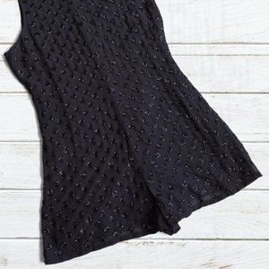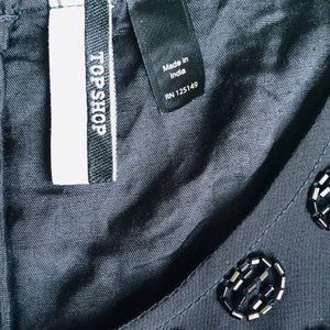 Topshop black sleeveless bead embellished romper. Size 8. This absolutely fabulous beaded romper, is sleeveless with a round neck. Zip at the back. Fully lined. 100% polyester. Dry clean only. NWOT, has spare beads attached. When photographing noticed beads missing at the back as shown in photo. From smoke/pet-free home. Please feel free to ask if you have any questions.