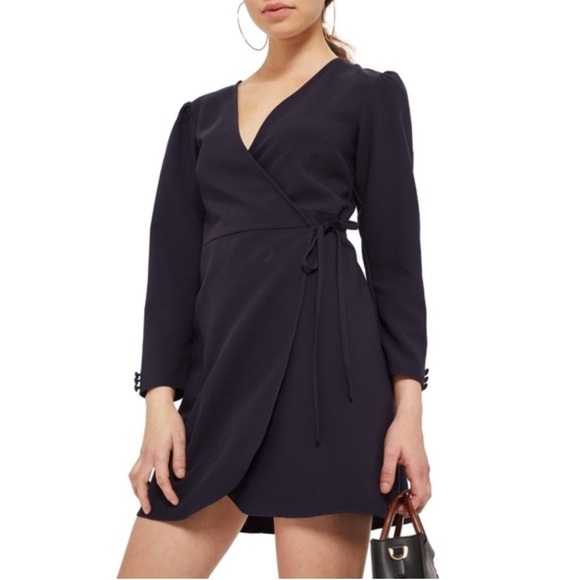 Topshop Black Crepe Wrap Mini Dress