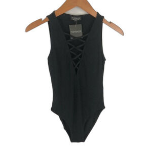 Topshop Black Lace-Up Bodysuit NWT Size 2
