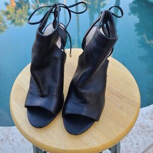 Topshop Black Leather Randy Heels Ankle Ties US 6.5 - UK 4 - EU 37