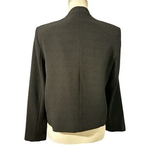 Sophisticated black blazer with open-front design. Ideal for both work and casual wear. Elevates any ensemble.