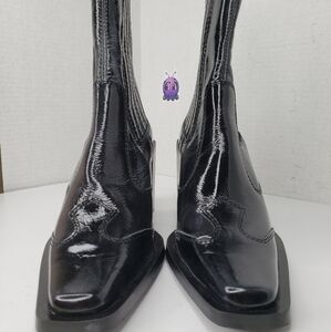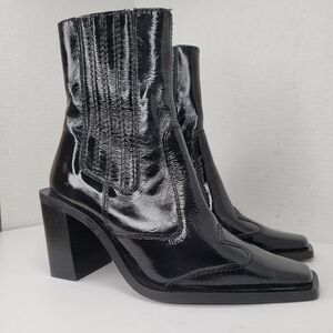 Topshop Black Patent Leather Stretch Panels Cowgirl Western Bootie Sz 4 Rodeo