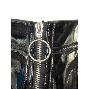 Topshop Black Vinyl Shiny Faux Patent Leather Full Zip Mini Skirt