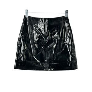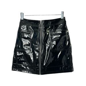 Topshop Black Vinyl Shiny Faux Patent Leather Full Zip Mini Skirt US Sz 2 NEW