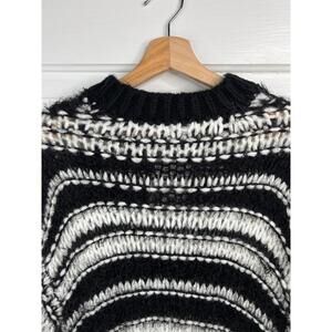 Topshop Black White Striped Crew Neck Fuzzy Chunky Knit Sweater Sz S Oversized