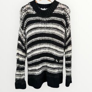 Features: Black and white stripes, Crew neck, Distressed details, Long sleeves, Oversized, Soft, Large knit