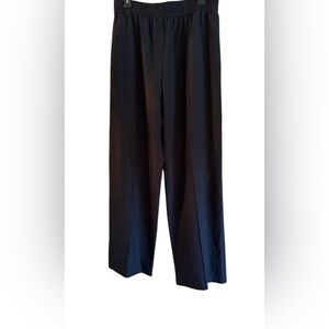Experience effortless style with these Topshop black wide-leg pants. Elastic waist for added stretch and comfort. Crafted from a smooth, medium-weight fabric, they offer a flowing silhouette that drapes beautifully to the floor. Perfect for any occasion, these pants provide a chic and timeless look.