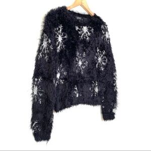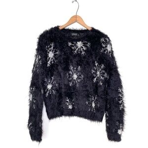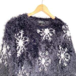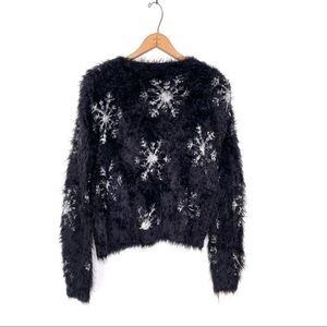 Excellent condition! Black soft fuzzy material with large white snowflakes. Cozy! Size 8. 20” armpit to armpit. 22” length.