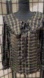 Elegant Topshop BLOUSE with a striking black and khaki texture. Ideal for a sophisticated style, PETER PAN RUFFLE EDGE COLLAR, LONG BALLOON BUTTON CUFF RUFFLE HEM SLEEVES, TIE V NECK PULL ON, WITH BABY DOLL FLARE. PRE OWNED IN EXCELLENT CONDITION.