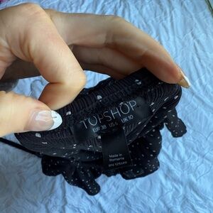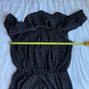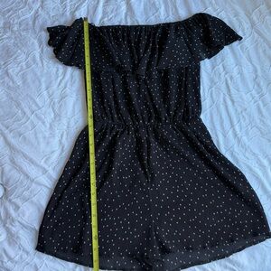 Topshop Black with White Polka Dot Romper Off the Shoulder Ruffle Mesh Material
