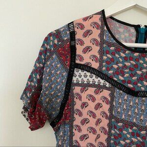 Topshop Blouse Colorful Patchwork Short Sleeve Top Boho Multicolor Pattern Small