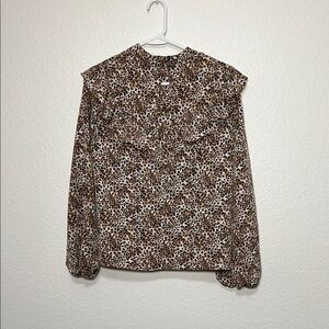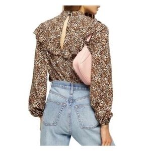 Topshop Blouse Size 8 Animal Print Ruffle Yoke Blouse