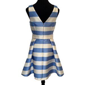 Topshop Blue White Stripe Cutout Mini Dress Size 6 Fitted Sleeveless V-Neck