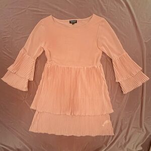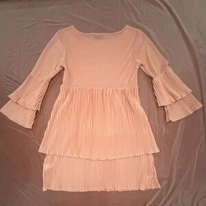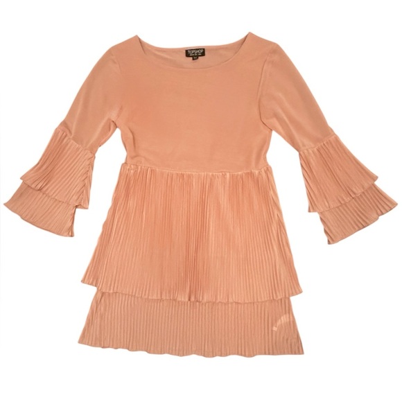 Topshop Blush Pink Long Sleeve Pleated Tiered Mini Dress Size 2/XS