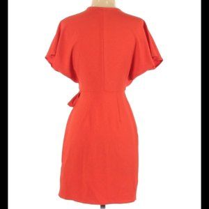 Topshop Bright Coral Crepe Tie Wrap Dress Petite 0