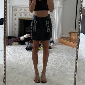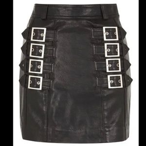 Topshop Buckle Detail Leather Mini Skirt - black, size 2