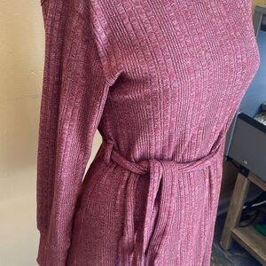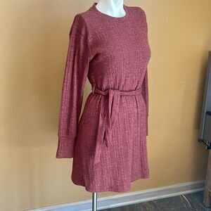 Topshop Burgundy Long Sleeve Short Sweater Dress Size 8 Knit Belted Round Neck