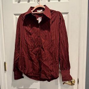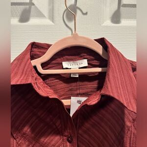 Topshop Burgundy Oversized Striped Shirt in US size 2