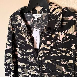 Topshop Button Front Oversize Camo Blouse In Green Multi Size 6 Brand New with tags