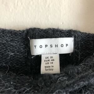 Topshop Cable Knit Open Back Ruffle Square Neck Long Sleeve Gray Sweater