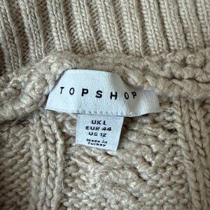 Topshop Cable Knit Oversized Zip Collar Sweat Oat Size 12