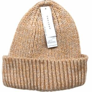 Topshop Camel Ribbed Beanie Knit Scandi Beanie Rolled Brim Winter Hat