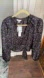 Topshop Star and Heart Print black Tie Front Cropped Blouse buttons Size 8 NWT