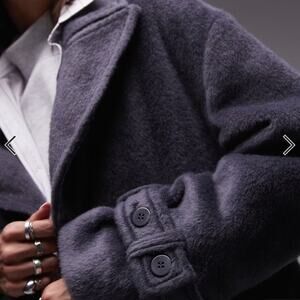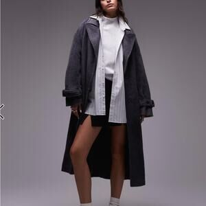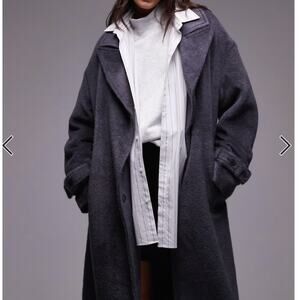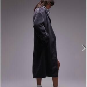 Topshop Chuck On Dark Gray Soft Felt Relaxed Fit Button Up Classic Long Coat