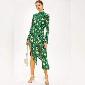 Topshop Green Floral Asymmetrical Chuck On Midi Dress Size 6