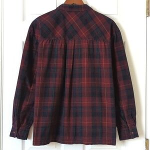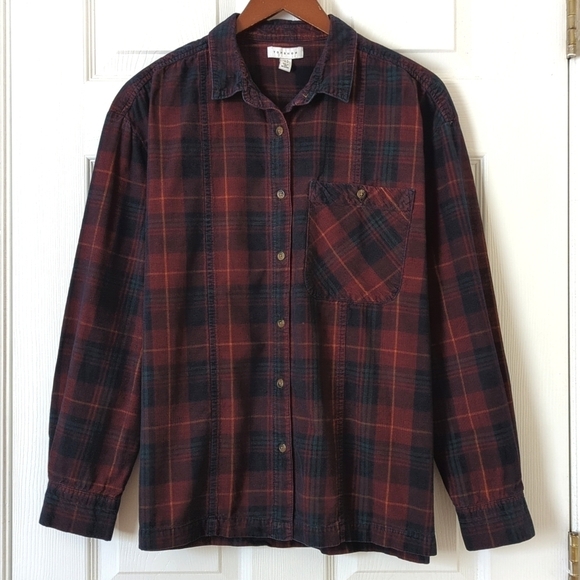 Topshop Classic Plaid Pinwale Corduroy Long Sleeve Button Down Shirt Burgundy 8