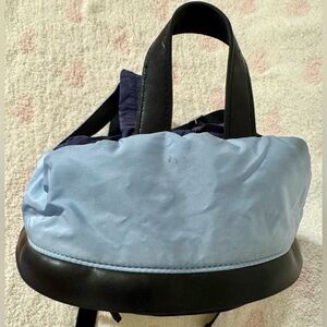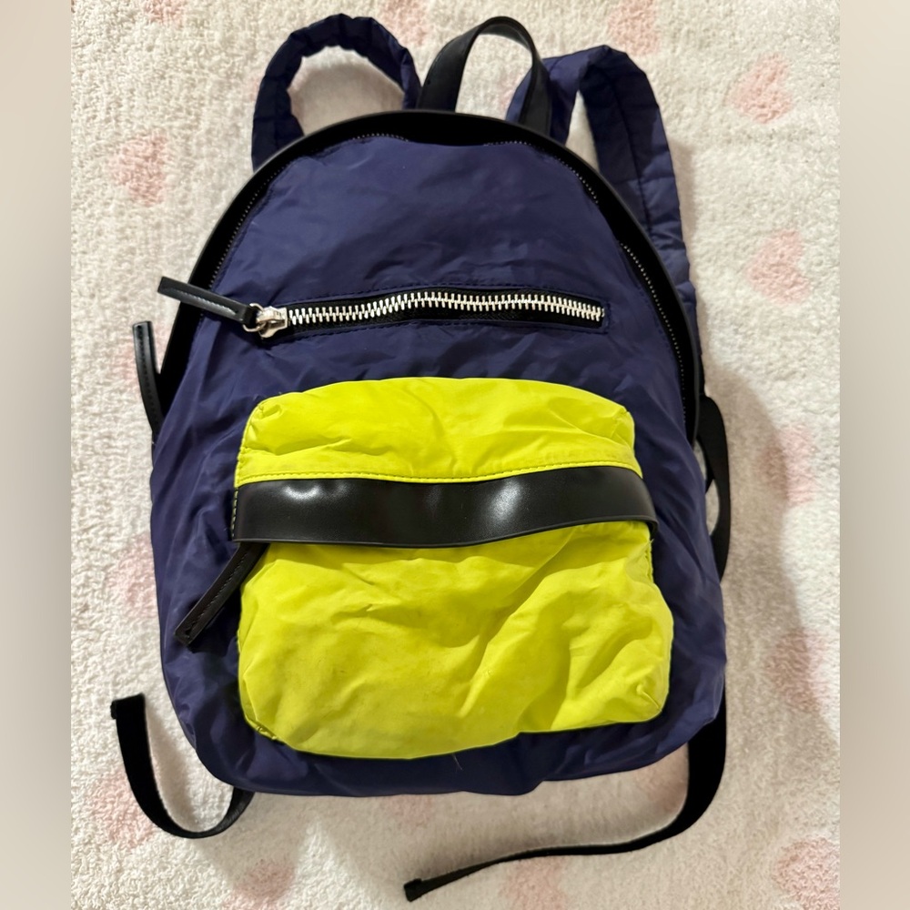 Retro vibes- small backpack in a color block navy and neon yellow design. Perfect for travel, sports, gym, festivals, etc. 🕶️