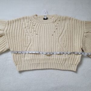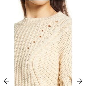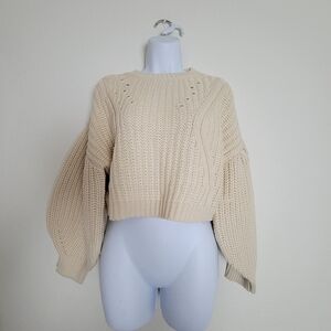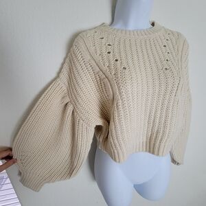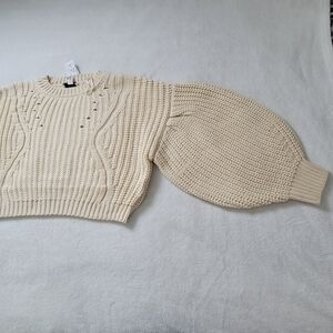 Topshop Cream Pointelle Knit Sweater Small Balloon Sleeve Chunky Pullover NWT