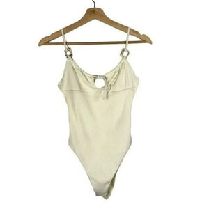 Topshop Cream Ribbed One Piece Tie Bust Swimsuit 6