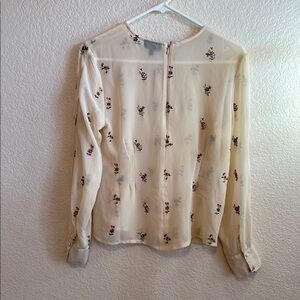 This elegant Topshop blouse features a sheer, embellished design in a soft cream color. The cuffed sleeves add a touch of sophistication, while the lightweight fabric ensures a comfortable fit. Perfect for both casual and dressier occasions, this blouse is a versatile addition to any wardrobe.