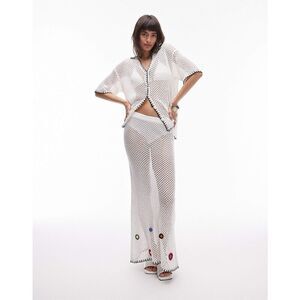 Topshop open knit maxi skirt, Crochet floral hem skirt, Cream A-line knit skirt, Elastic waist maxi skirt, Topshop boho style skirt, Vintage-inspired maxi skirt, Floral doily knit skirt, Topshop cream long skirt, Bohemian knit skirt, New with tags Topshop skirt, beach skirt, festival skirt, Topshop skirt, summer maxi skirt