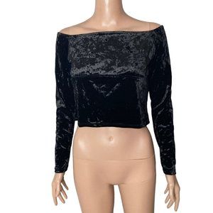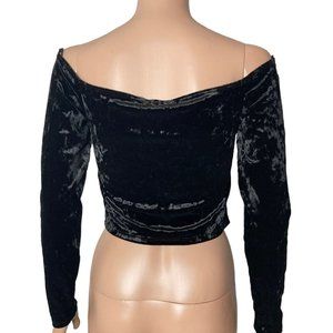 Topshop Crop Top Velour Womens Size 8 Black Stretch Off Shoulder New