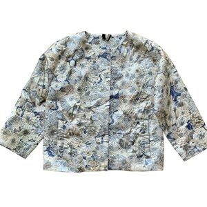 Topshop Cropped Metallic Floral Textured 3/4 Sleeve Jacket Beige Size US 4