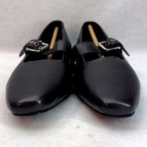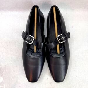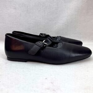 Topshop Cyndi Leather Square Toe Ballet Flats Shoes With Buckle Black size 7.5