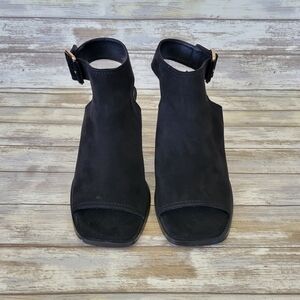 Topshop Daisy Buckle Block Heel Open Toe Sandals Women's Size 41/US 10.5 Black