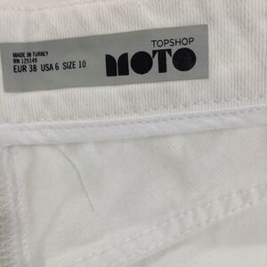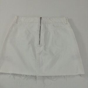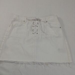 Topshop Denim Mini Skirt White Micro Mini Moto Eye Lace Up Raw Hem Size 6