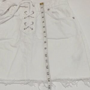Topshop White Micro Mini Skirt Moto Eye Lace Up Raw Hem Mini Skirt