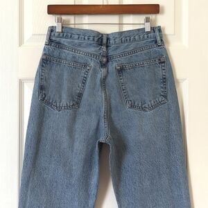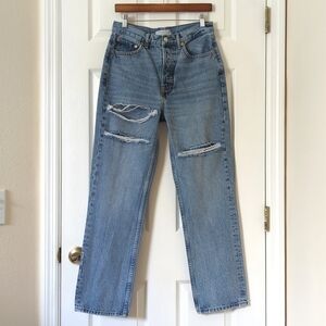 Topshop Distressed Medium Wash High Rise Straight Leg Button Fly Dad Jeans 28