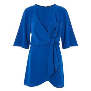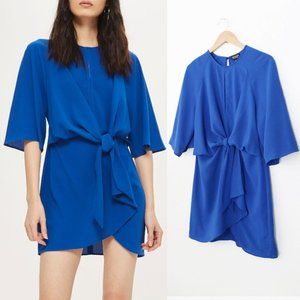 Topshop Dress Wide Half Sleeves Knot Tie Front Cobalt Royal Blue Mini Dress US 8
