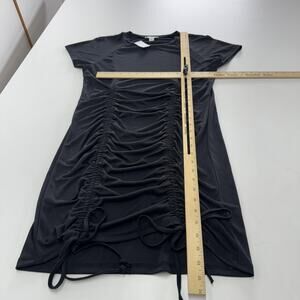 Topshop Dress Womens 10 Black Ruched Drawstring Bodycon T-Shirt Mini Stretch