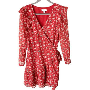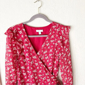 Topshop Dress Women's 8 ASOS Tomato Girl Summer Floral Wrap Tie Waist Ruffle
