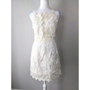 Topshop Dress Womens US 4 Sleeveless Lace Ivory A Line Knee Length Lined N20