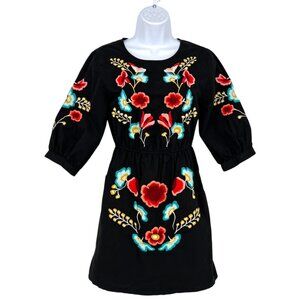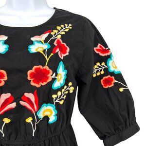 Topshop Embroidered Floral Puff Sleeve Black Mini Dress Size 4 US 8 UK