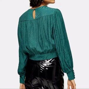Topshop Emerald Green Jacquard Animal Print Long Sleeve Blouse 8